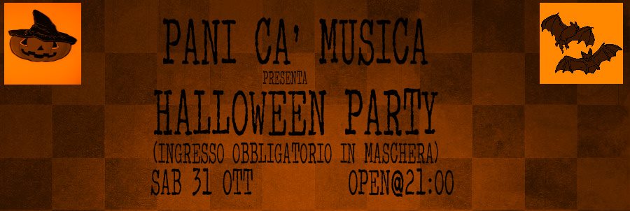 In occasione della festa di Halloween ,il Pani cà Musica organizza una festa in maschera con lo scopo di divertirci,stare in compagnia con buona musica,buon cibo e birra!