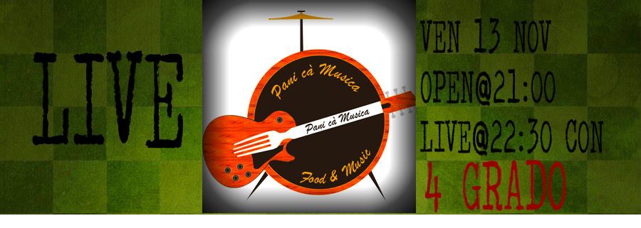 Venerdì 13 fortunato a Pani cà Musica con il live dei 4° grado. Start 21.00 e live 22.30.